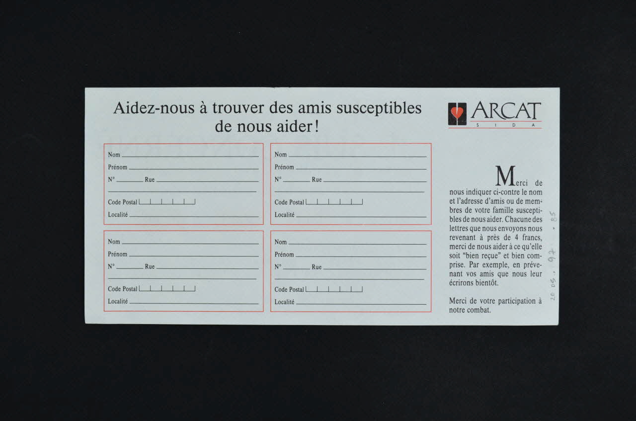 Bulletin de souscription, "Oui, je suis concerné par l'action de l'ARCAT-SIDA pour le recherche et la santé publique"