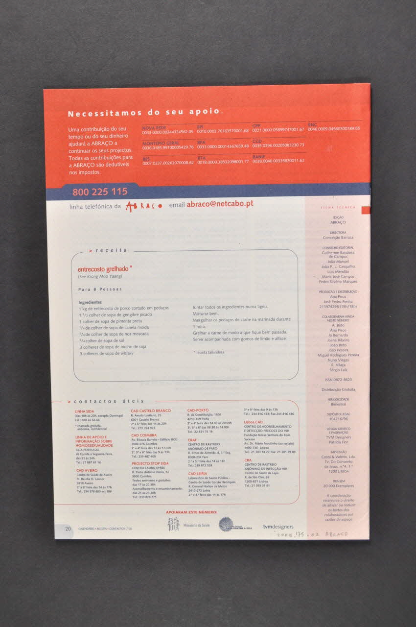 XV INTERNATIONAL // AIDS CONFERENCE (sur la partie droite de la page, avec les trois éléphants), rectoMinistério da Saude // // Comissio Nacional // LUTTA CONTRA A SIDA // // tvmdesigners (Trois logos alignés en partie inférieure), versoTitre