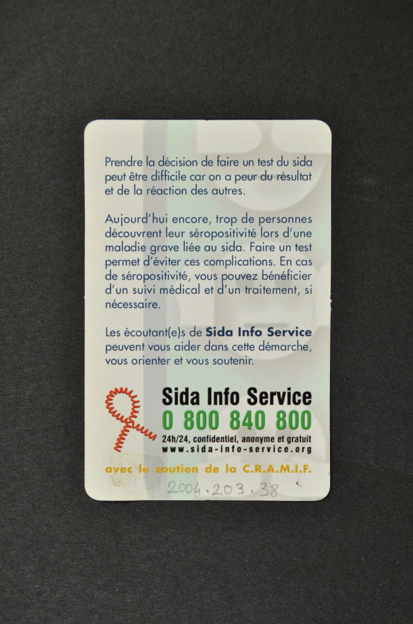 Prendre la décision de faire un test du sida // peut être difficile car on a peur du résultat // [...] (Texte du verso inscrit en blei), versoNom d'association