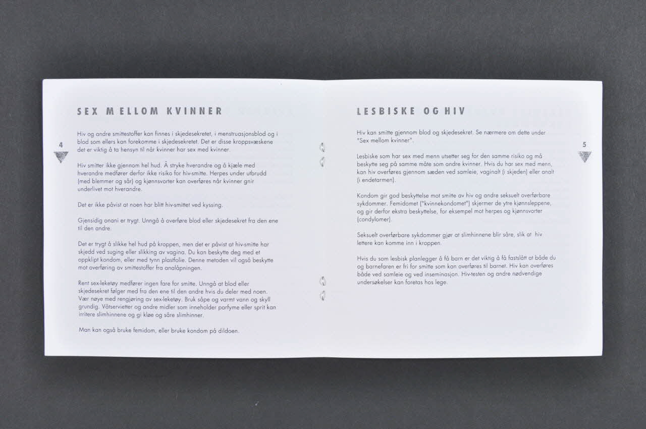 SIKRERE SEX // // for kvinner som har sex med kvinner (Imprimé en gris sur le fond noir, de part et d'autre du triangle), sur la couvertureTexte