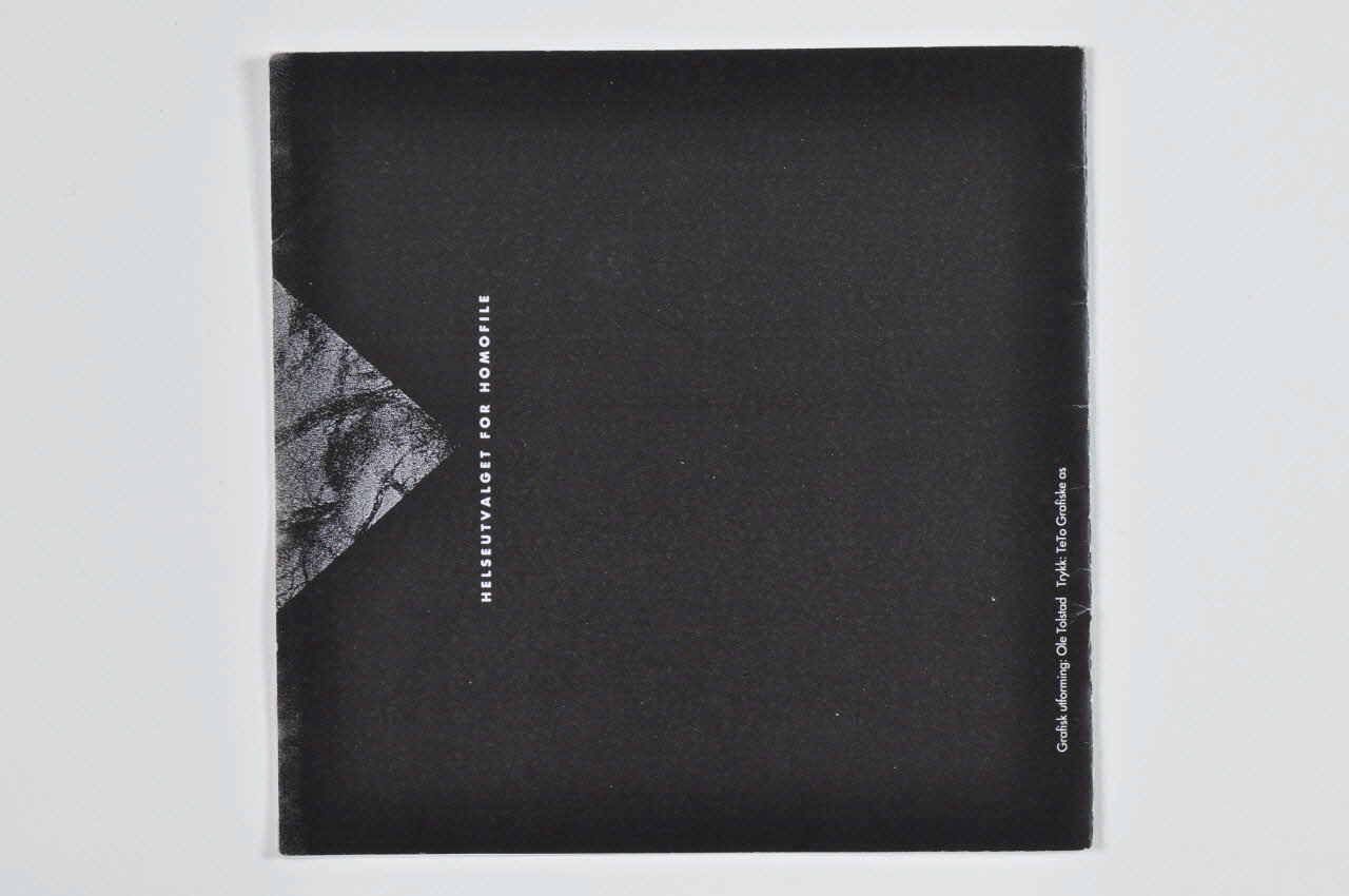 HELSEUTVALGET FOR HOMOFILE (Imprimé verticalement en capitales blanches à gauche et repris au verso), sur la couvertureDécor