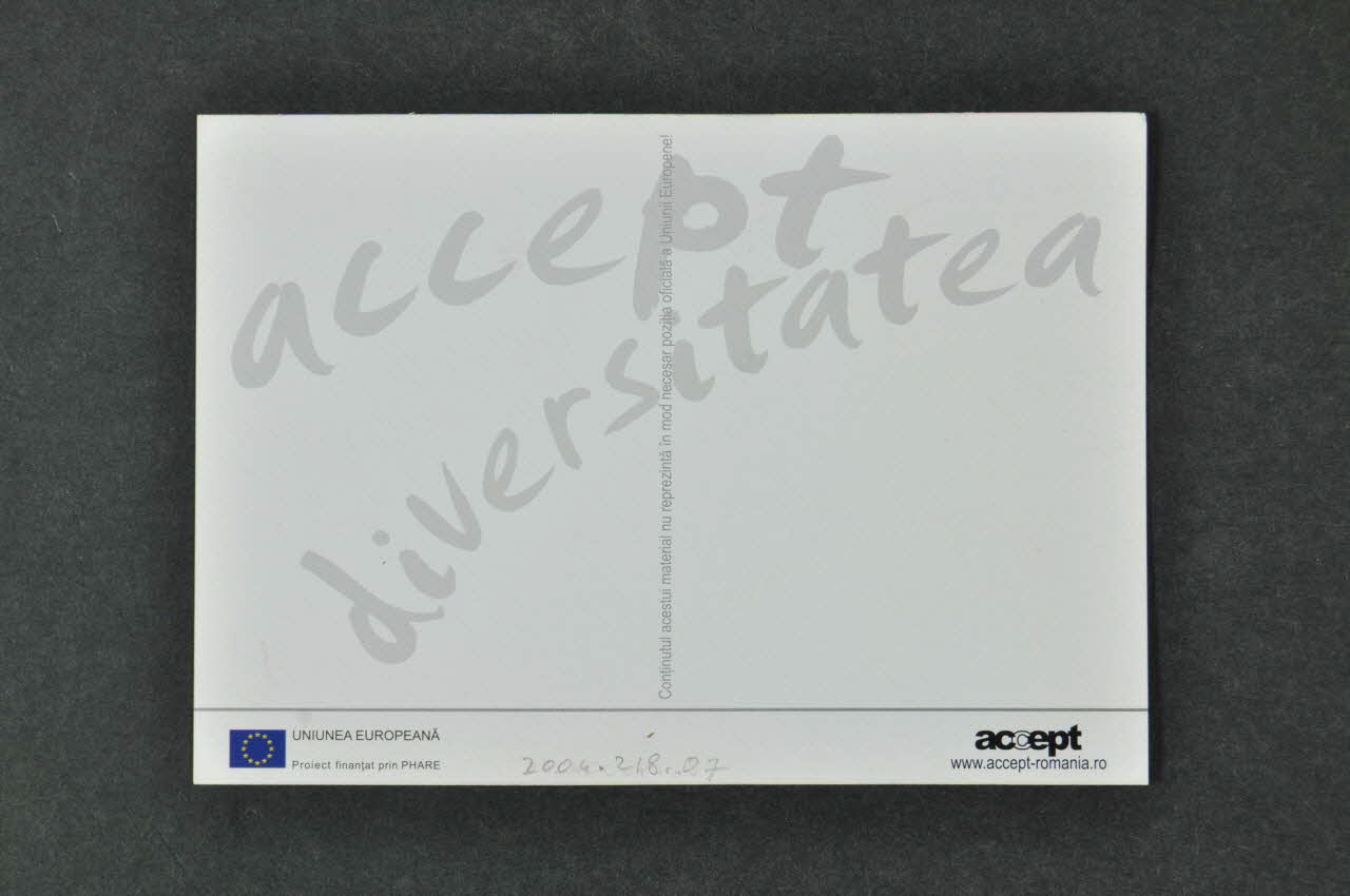 www.accept-romania.ro (Dans la partie inférieure du verso, à droite, le logo de l'association Accept est inscrit, ainsi que l'adresse de son site internet), versoLogo