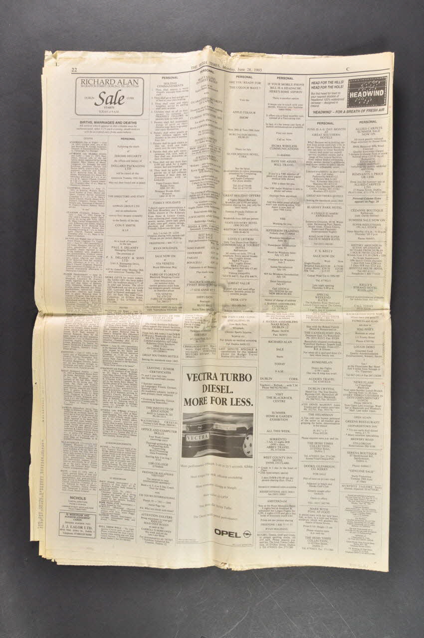 DUBLIN, MONDAY, JUNE 28, 1993 (Dans la partie supérieure (.1)), sur la couvertureTexte