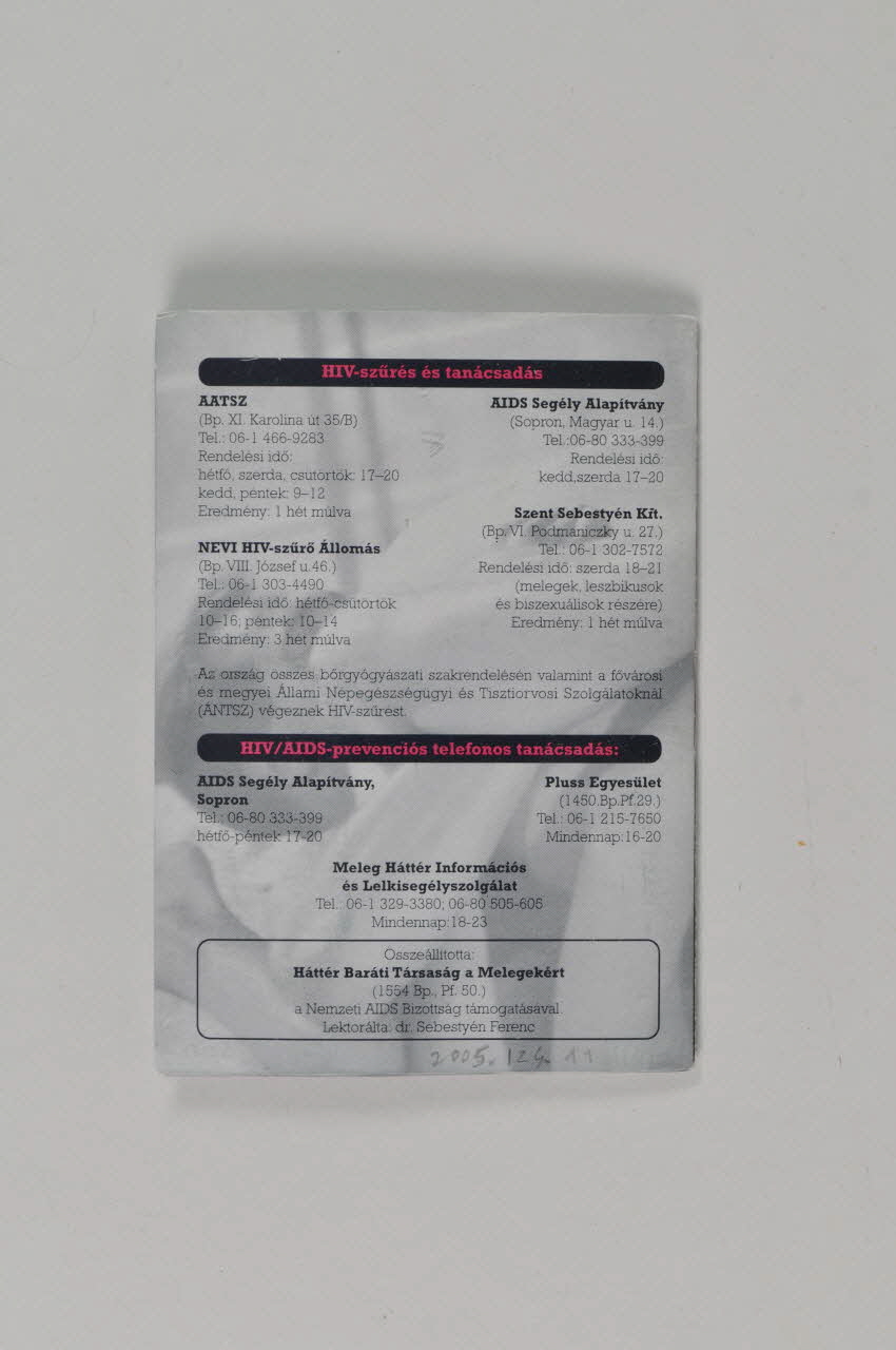 BROCHURE, Préservatif, Au sujet du sida pour les personnes gays, lesbiennes et bisexuelles(en hongrois)