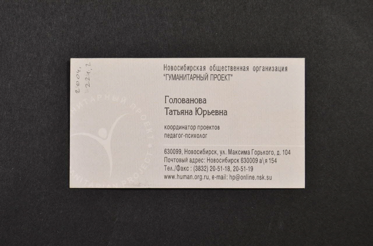 carte de visite, Carte de visite bilingue russe anglais de la coordinatrice du projet