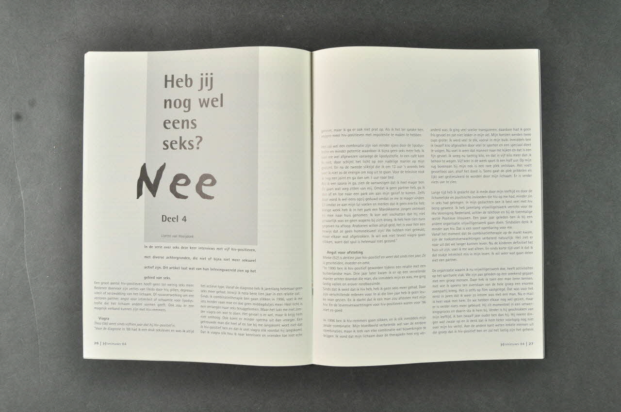 Revue associative, "Hivnieuws", septembre octobre 2003, n° 84 / Janherman Veenker verlaat bestuur Aids Fonds