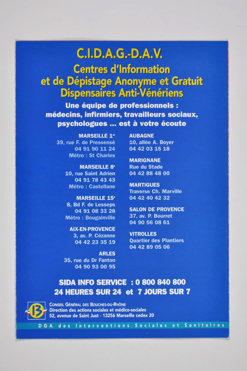 Conseil Général des Bouches-du-Rhône // Direction des actions sociales et médico-sociales // 52, avenue de Qaint Just - 13256 Marseille cedex 20 (l'adresse figure dans la partie inférieure), versoDécor