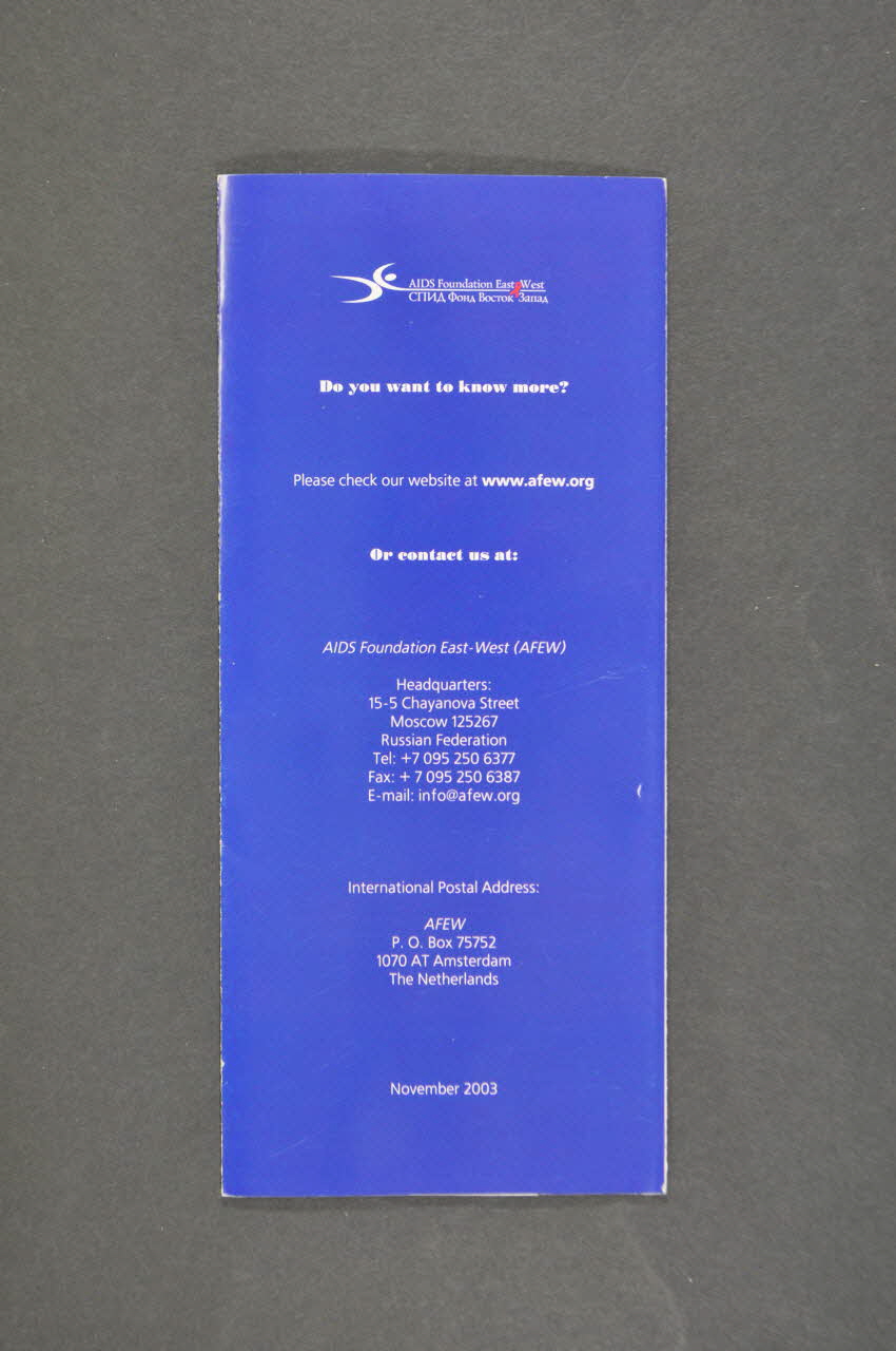 Aids Foundation East West (AFEW) // 'East & West Working Together' (de la couverture), au centreAdresse