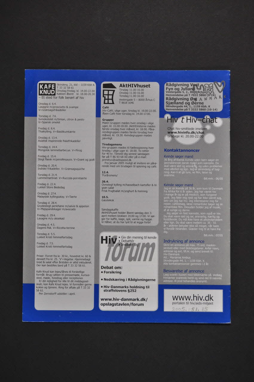 HIV // DANMARK (Nom d'une association dans le coin supérieur gauche), sur la couvertureDate