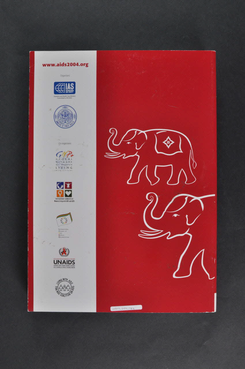 XV INTERNATIONAL // AIDS CONFERENCE // BANGKOK, 11 - 16 JULY 2004 (sous le bandeau, avec le dessin de trois éléphants rouges.), sur la couvertureAdresse