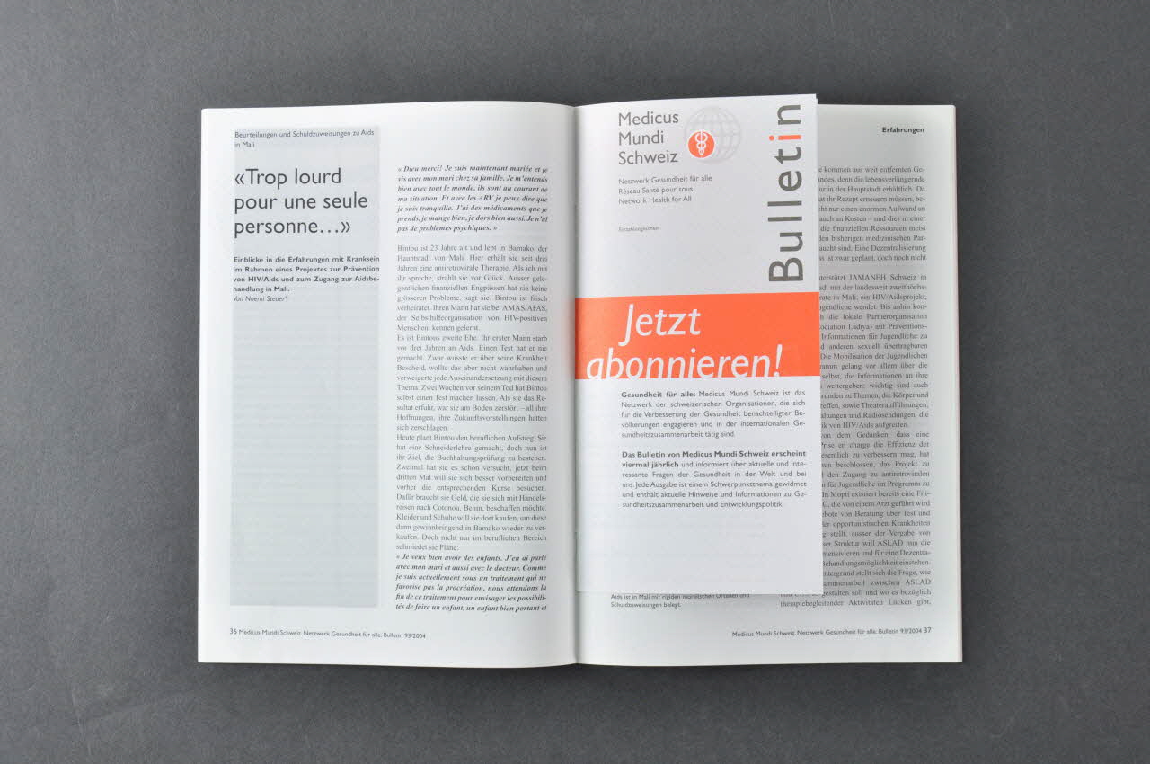 Bulletin, Netzwerk Medicus Mundi Schweiz, n° 93 juin 2004 / (Be-)Handeln. Eine Chance für Menschen mit HIV/Aids Mundi Schweiz / Nr.93 juin 2004 / J'agissais en tant qu'acteur. Une opportunité pour les personnes vivant avec le VIH/SIDA