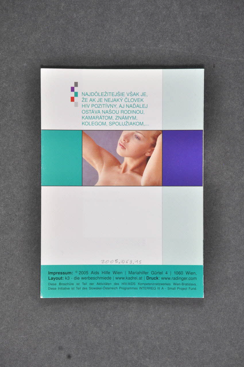 impressum: ©2005 Aids Hilfe Wien Mariahilfer Gütel 4 1060 Wien (Date et lieu d'impression inscrit dans le bas de l'arrière du dépliant), en basDécor