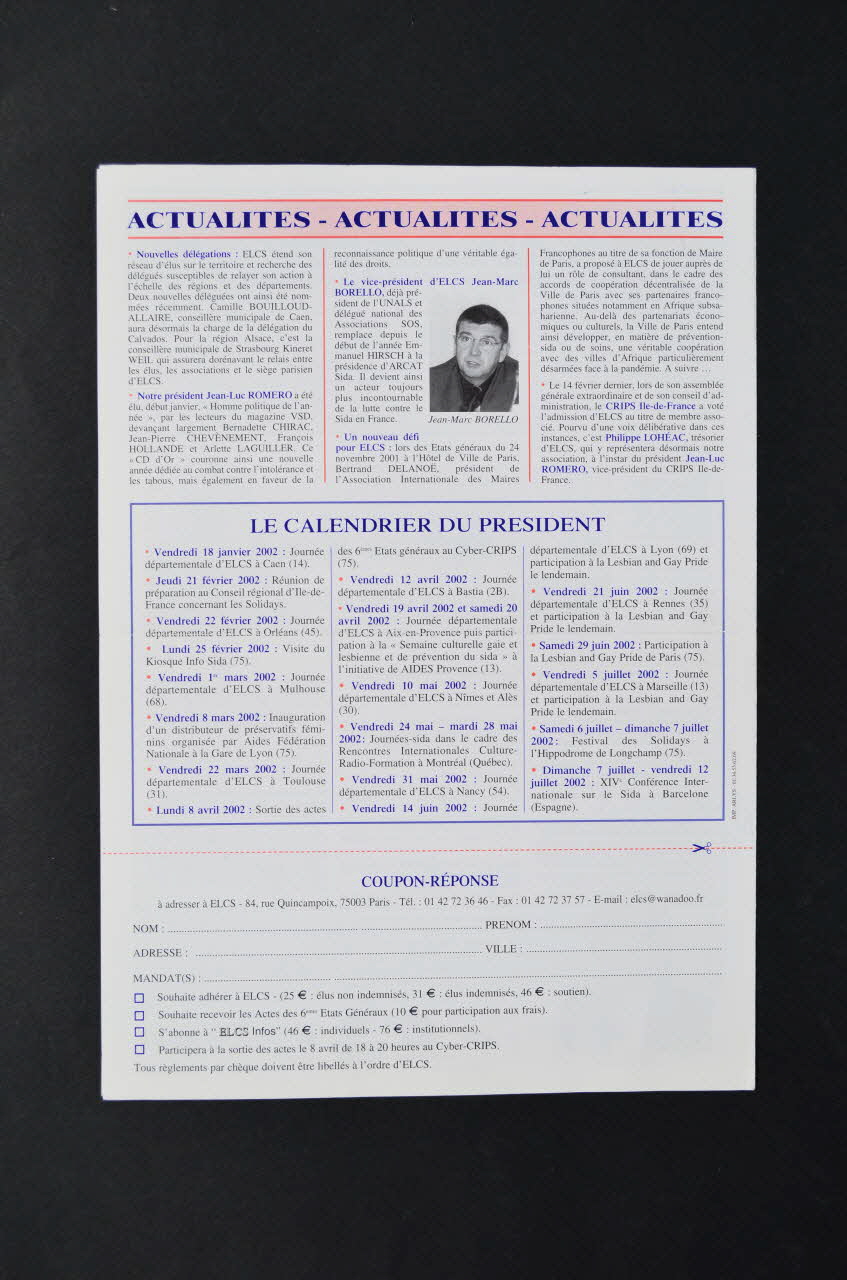 lettre, La lettre des Elus locaux contre le sida, ELCS Infos, n°8 mars 2002