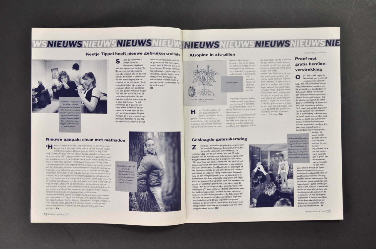Sommaire (traduire les titres) - p.4 Afkicken cocaïne (signalé en couverture) (résumé dans le sommaire) - p.6 Nieuws : Keetje Tippel heeft nieuwe gebruikersruimte (résumé dans le sommaire) - p.9 Dagboek : Claustrofobie in België (journal de Brigitte) - p.10 Naar de tandarts. Goed gebit loont de moeite (signalé en couverture) (résumé dans le sommaire) - p.12 Buprenorfine nieuw wondermiddel ? (signalé en couverture) (résumé dans le sommaire) - p.16 Testen hiv - p.18 Daklozen : Bij vorst onder de pannen. Dakloos in de winter (signalé en couverture) (résumé dans le sommaire) (SDF) - p.20 Gezondheidsnieuws : Tatoeëren en piercen - p.22 Lezerspost en puzzel : Lettres de lecteurs (résumé dans le sommaire) et mots croisés - p.23 Zutphen. Lange peuken op straat (Lieu de dope ) - p.24 Persoonlijk : Photo et présentation de Mimoun Elmajiti, artiste usager de drogue ??. / Testen hiv / En page 2 et 3, extrait du sommaire avec résumé des articles principaux, et sommaire des rubriques, tous les articles n'y figurent pas.