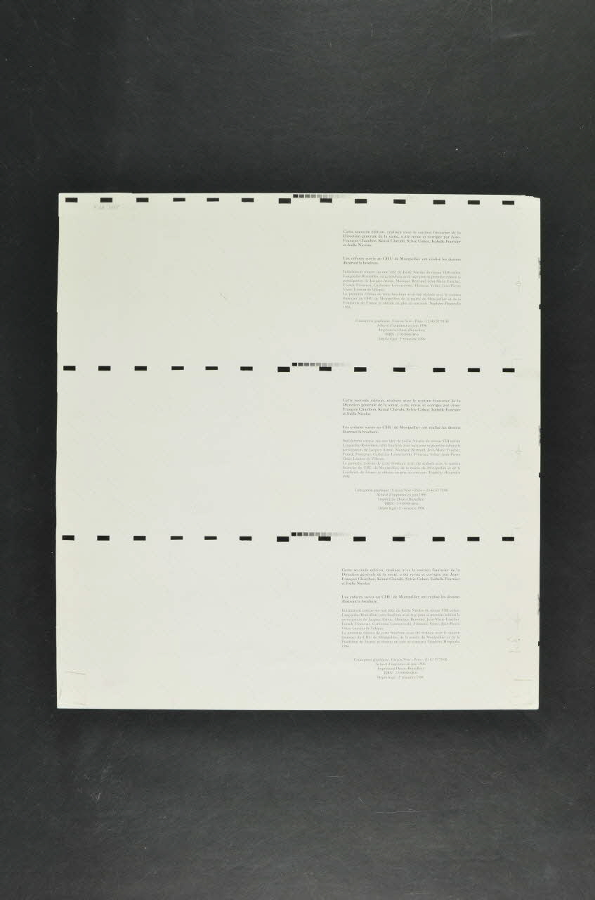 Conception graphique: Crayon Noir - Paris - (1) 43 57 70 00 // Achevé d'imprimer en juin 1996 // Imprimerie DRUCO (Bruxelles) // ISBN: 2-910958-08-6 // Dépôt légal: 2e trimestre 1996 (Imprimé en caractères noirs sous le texte), versoTitre