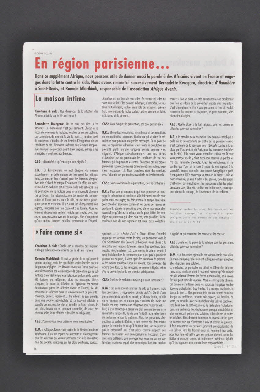journal, Chrétiens & sida. Supplément Afrique numéro 3