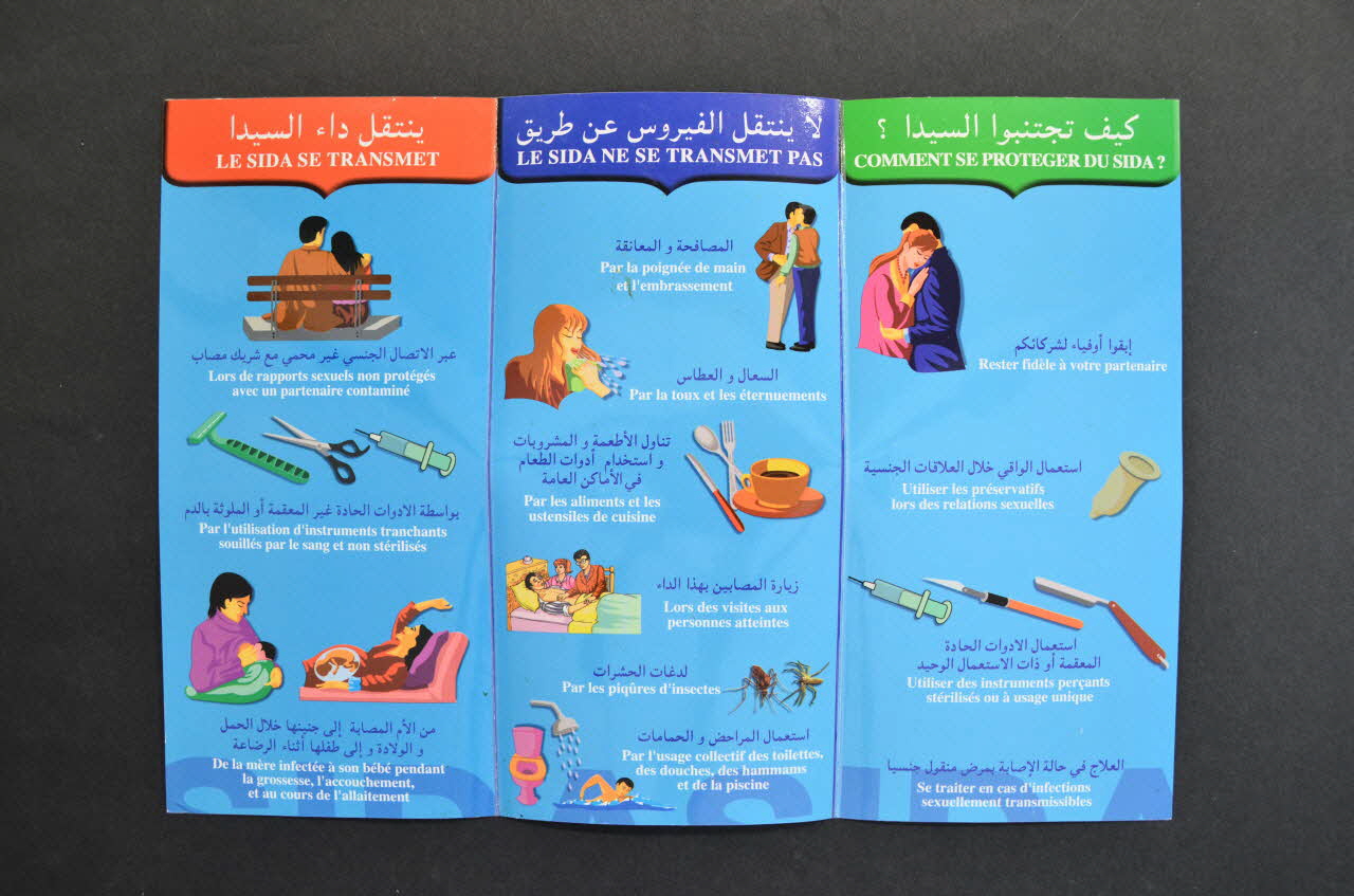 Dépliant, "Sida. Mal informés, donc vulnérables. Vous aussi, vous êtes concernés" (en français et en arabe)