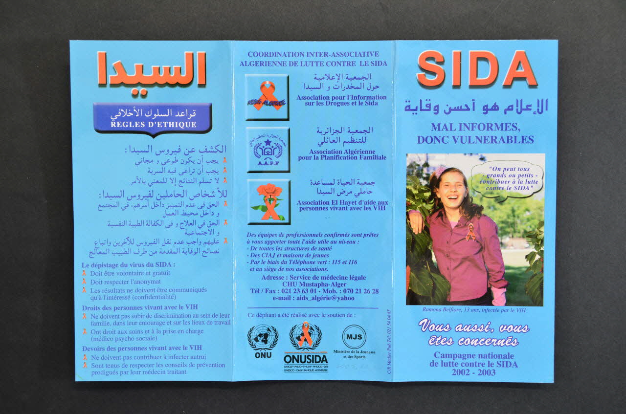 - Association pour l'Information sur les Drogues et le Sida // - Association Algérienne pour la Planification Familiale // - Association Al Hayet d'aide aux personnes vivant avec les VIH // - ONU // - ONUSIDA // - MJS (six logos en haut et en bas du dos du dépliant), versoDécor