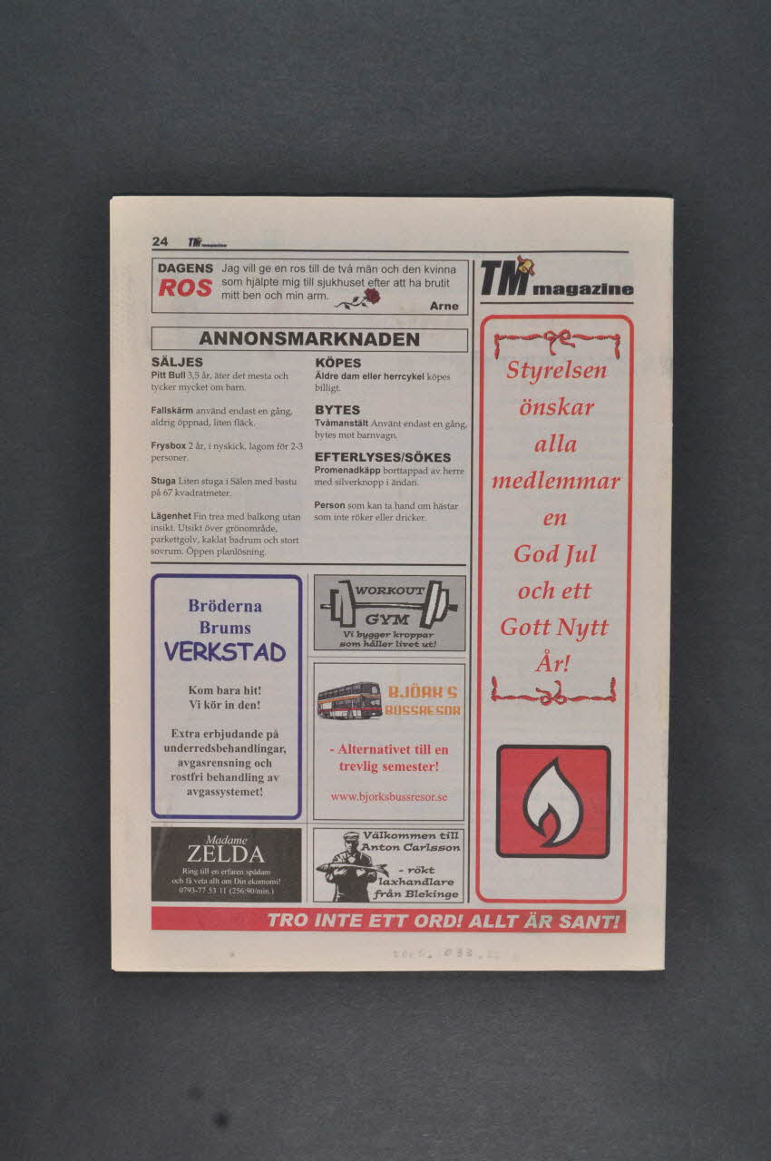 Revue associative, TM Magazine, décembre 2002 : "Posithiva Gruppen Bästa jultidning !" (traduire)