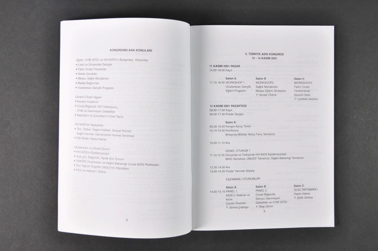 AIDS Savasim Dernegi Merkezi // Rumeli Cad. No: 84 D: 1 // Birlik Apt. 80110 // Osmanbey - ISTAMBUL (L'adresse, en caractères noirs, figure dans la partie inférieure de la deuxième de couverture.), à l'intérieurNuméro