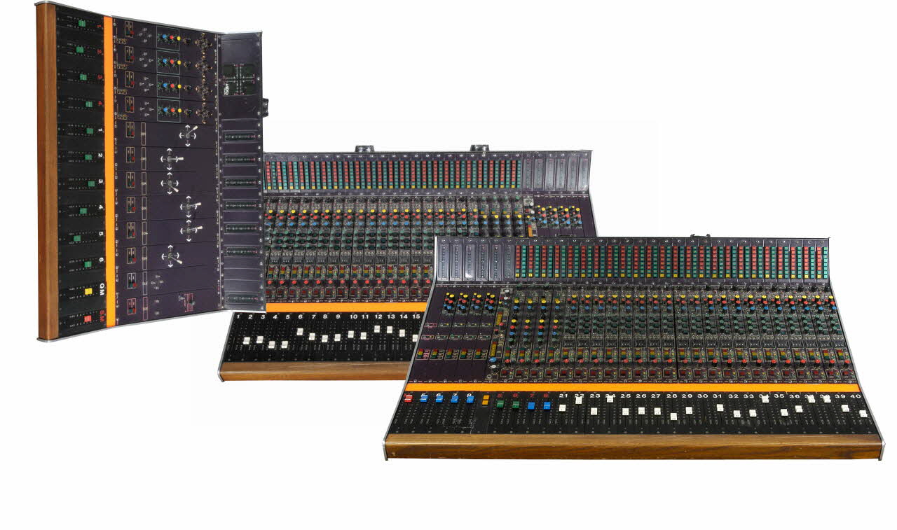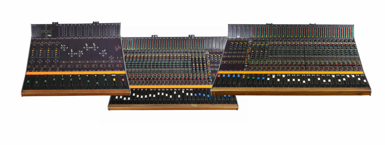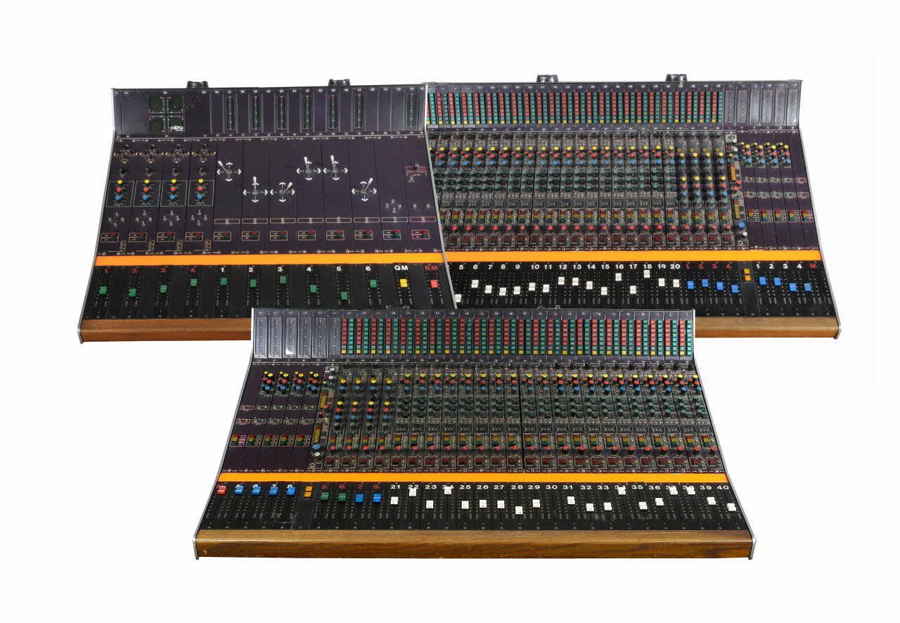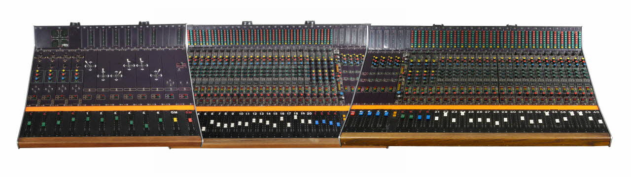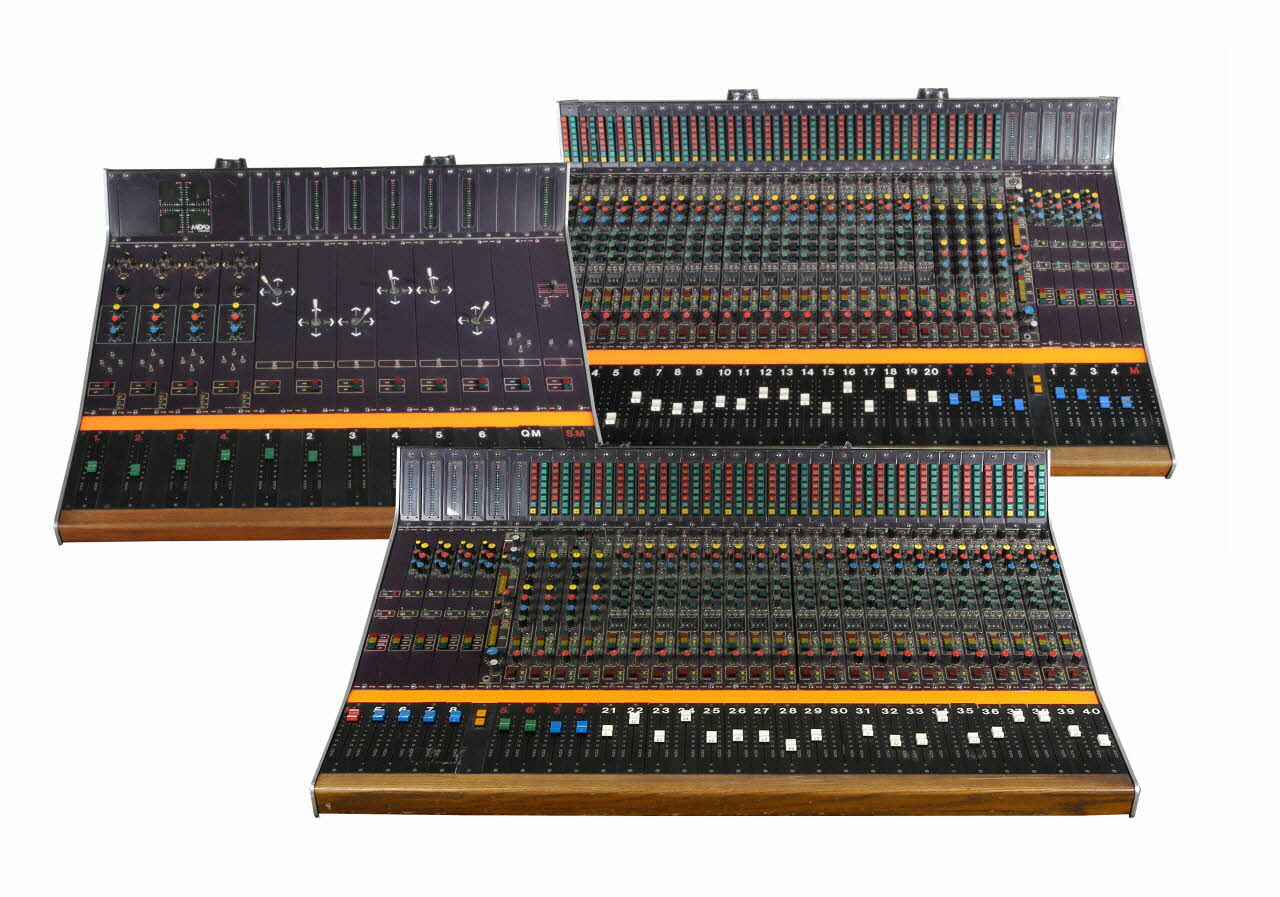ensemble de trois tables de mixage avec leurs accessoires, permettant la réception, le traitement et la diffusion du son produit sur scène par le groupe Pink Floyd.Provenance et historique