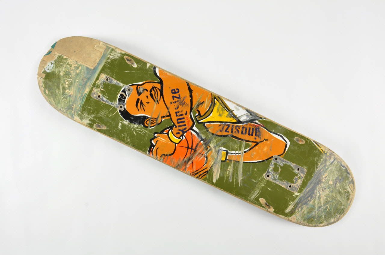 Lieu : FranceDate : 1993 - 1994Planche de skateboard utilisée durant une courte période car présentant un défaut. Planche retournée au distributeur (Vaissette).