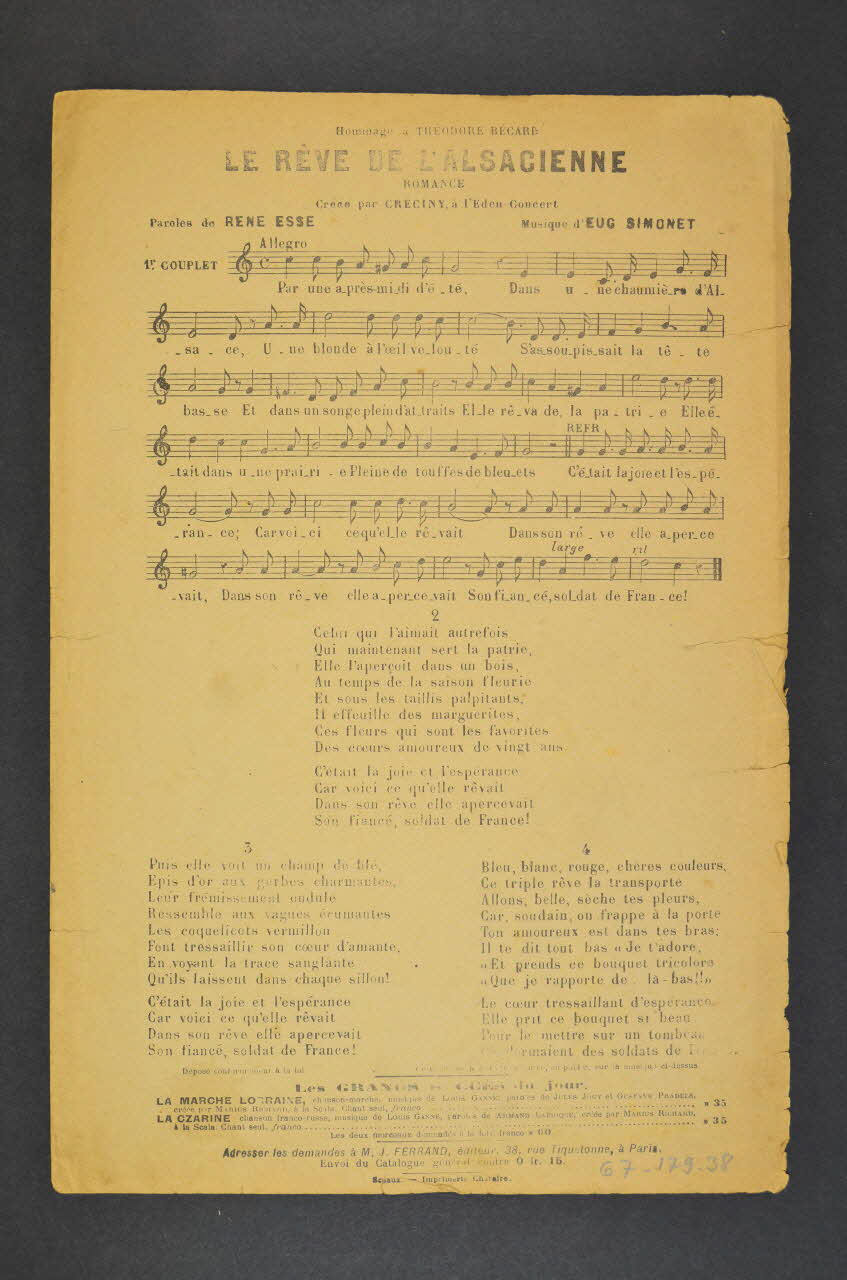 partition de musique, chanson, petit format, Le Rêve de l'Alsacienne