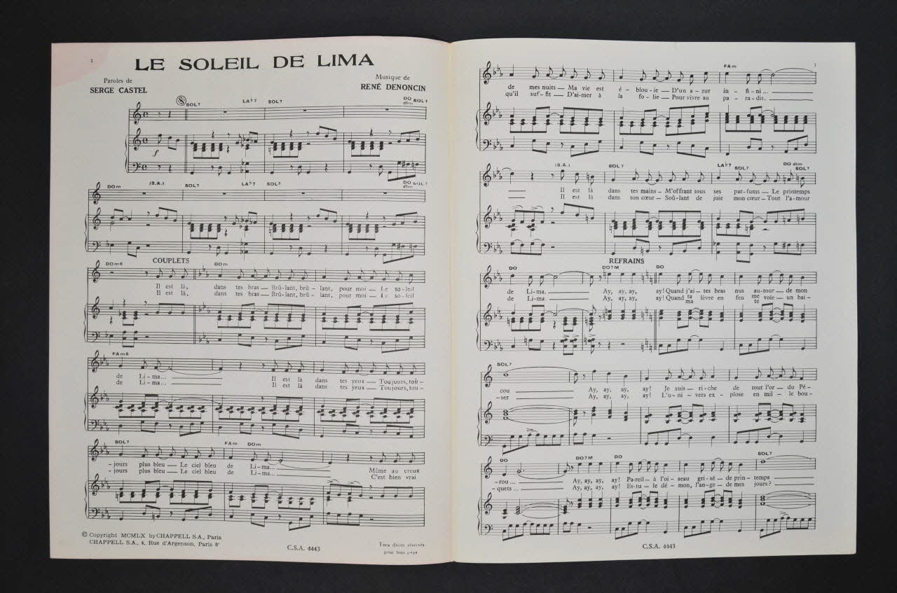 partition de musique, chanson, petit format, Le Soleil de Lima