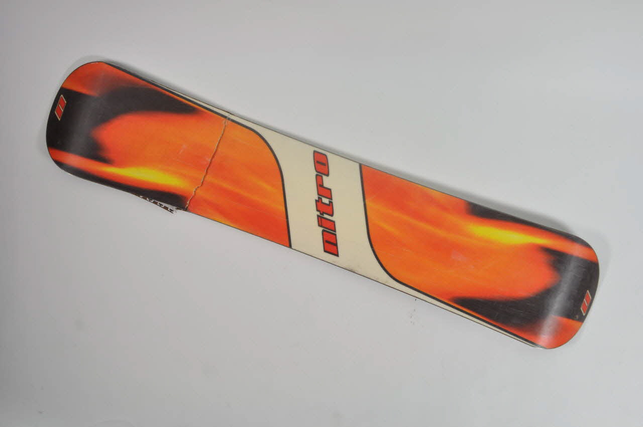Le snowboard est cassé au niveau de l'emplacement de la fixation avant.