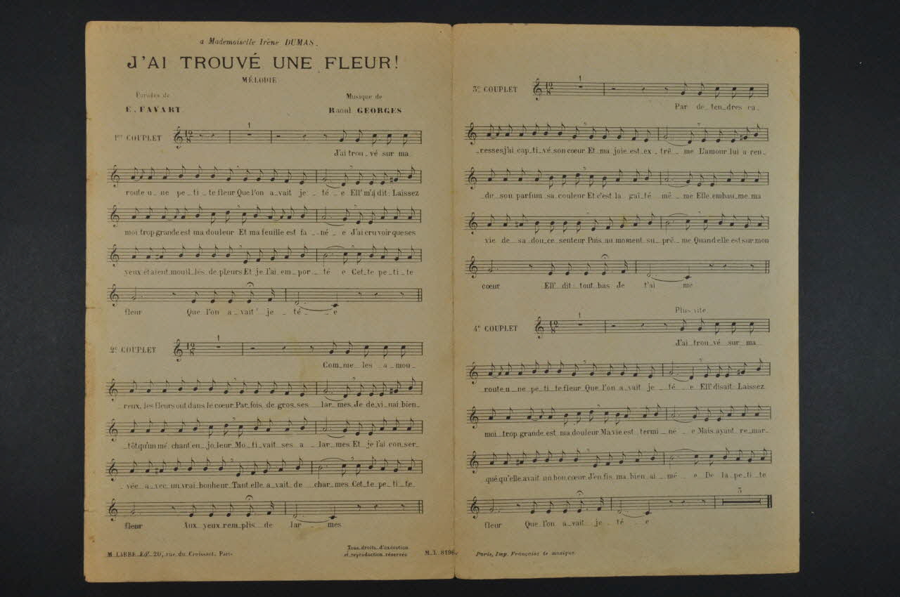 partition de musique, chanson, petit format, J'ai trouvé une fleur