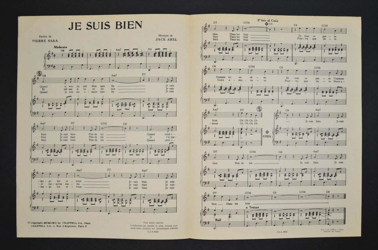 Les inscriptions renseignent le titre de la chanson, le nom des auteurs, de l'artiste et de l'éditeur. A l'intérieur, partitions et paroles de la chanson. Au dos, liste d?autres partitions publiées par l?éditeur.Matériaux et techniques