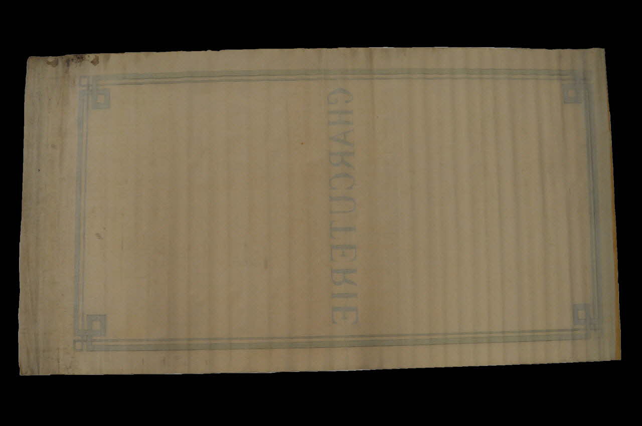 Il s'agit d'une toile peinte de format rectangulaire. Elle se compose d'un encadrement à double filet brun et aux angles apparaissent des motifs géométriques qui ressemblent à des triglyphes. Au centre figure une inscription en lettres capitales.Décor