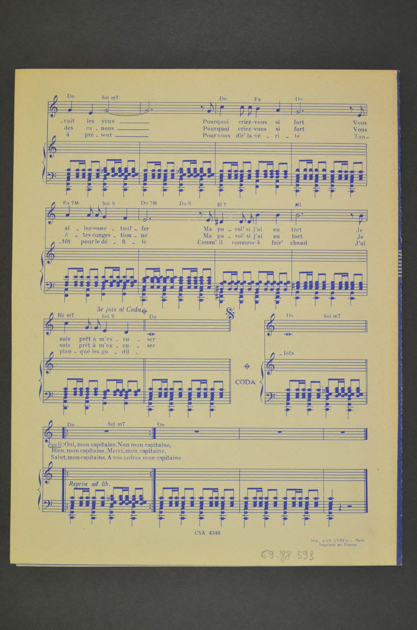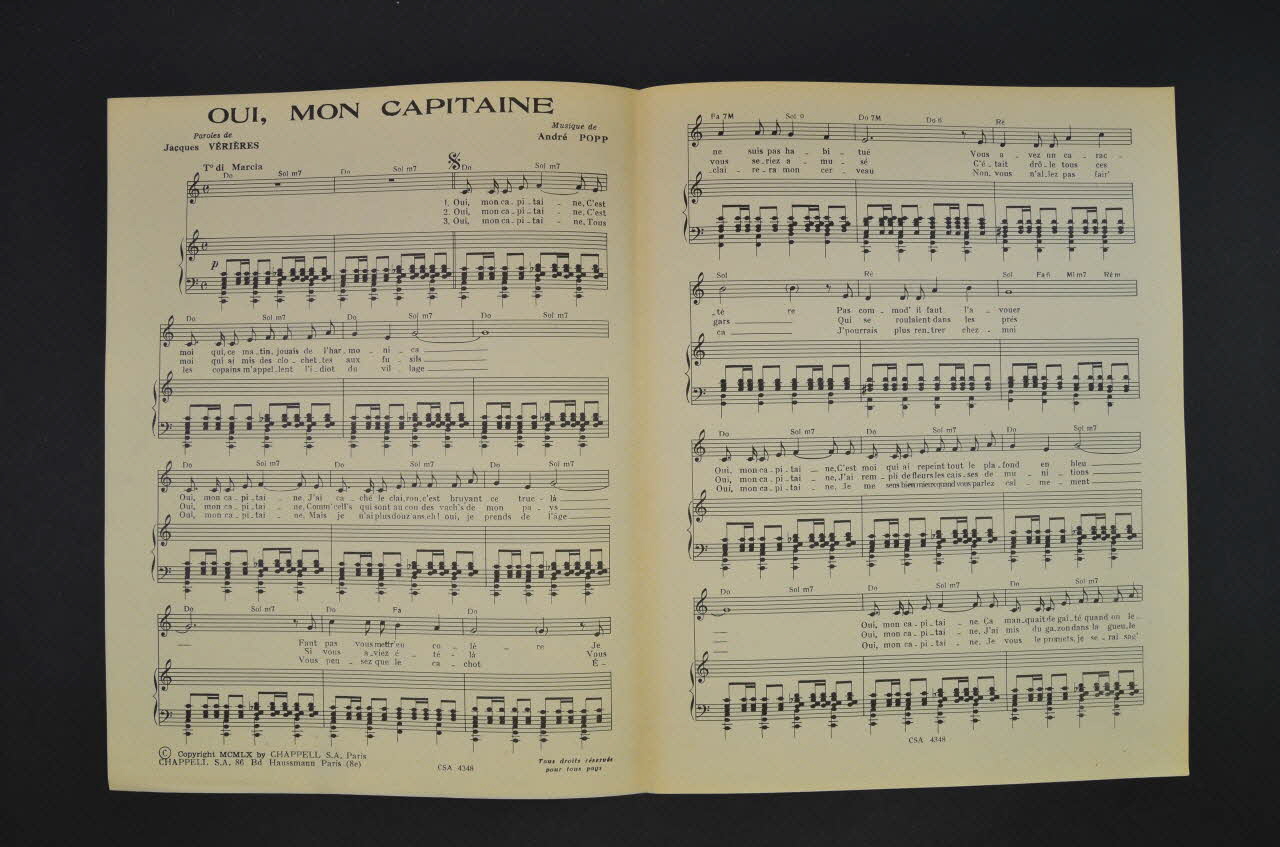 partition de musique, chanson, petit format, Oui, mon capitaine