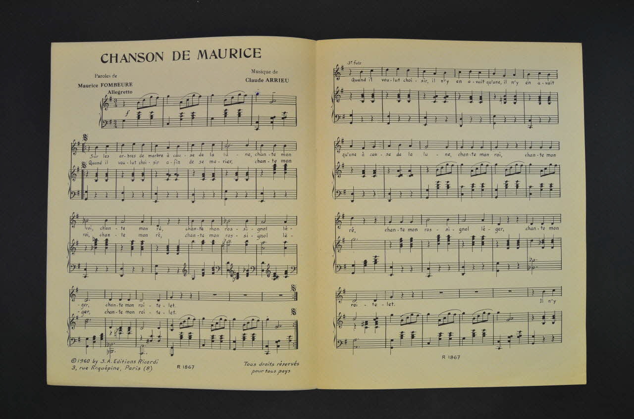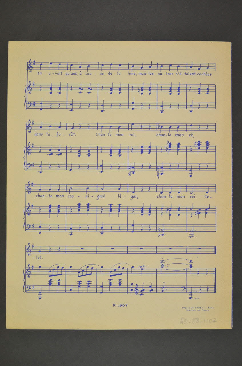 Les inscriptions renseignent le titre de la chanson, le nom des auteurs, de l'artiste et de l'éditeur. A l'intérieur et au dos, la partition et les paroles de la chanson.Matériaux et techniques