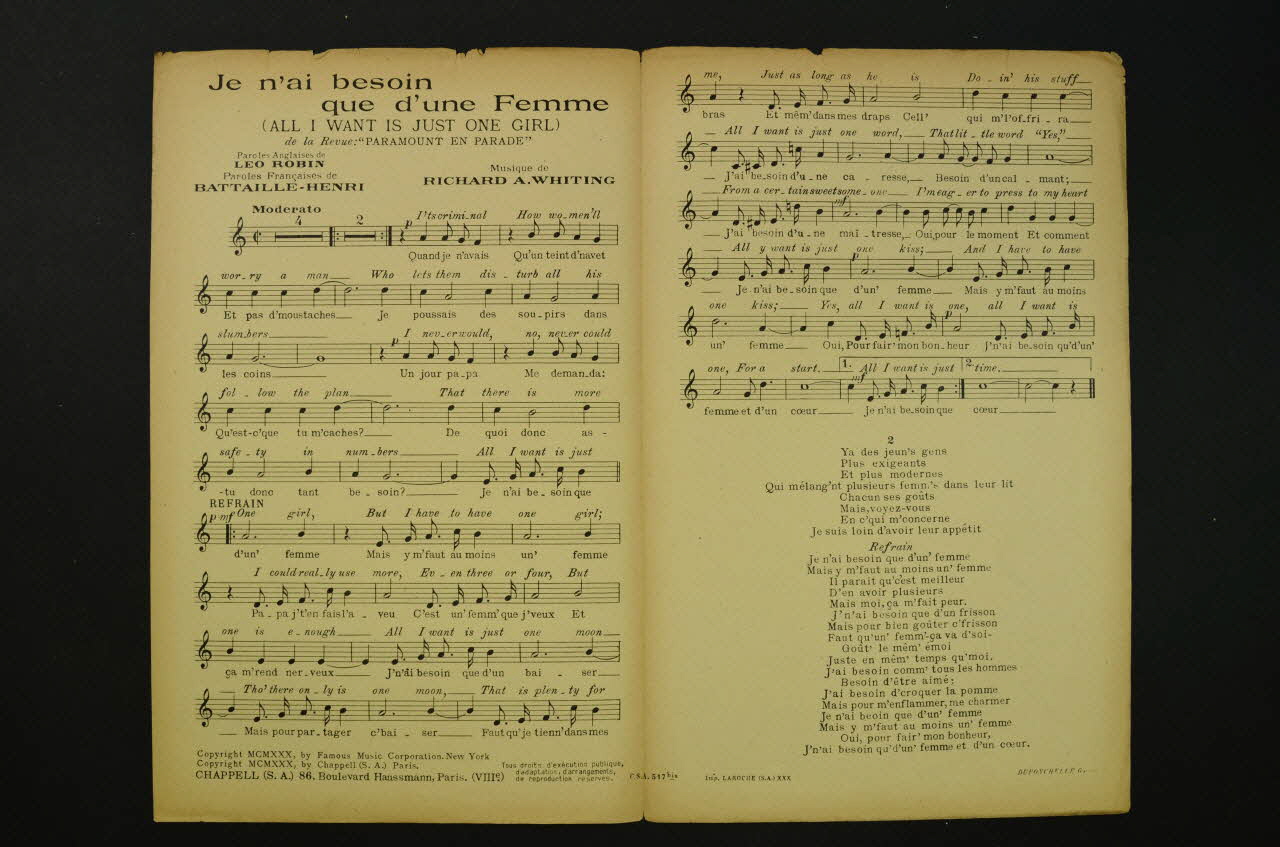 De : Date : 1930Paroles anglaises / Paroles françaises