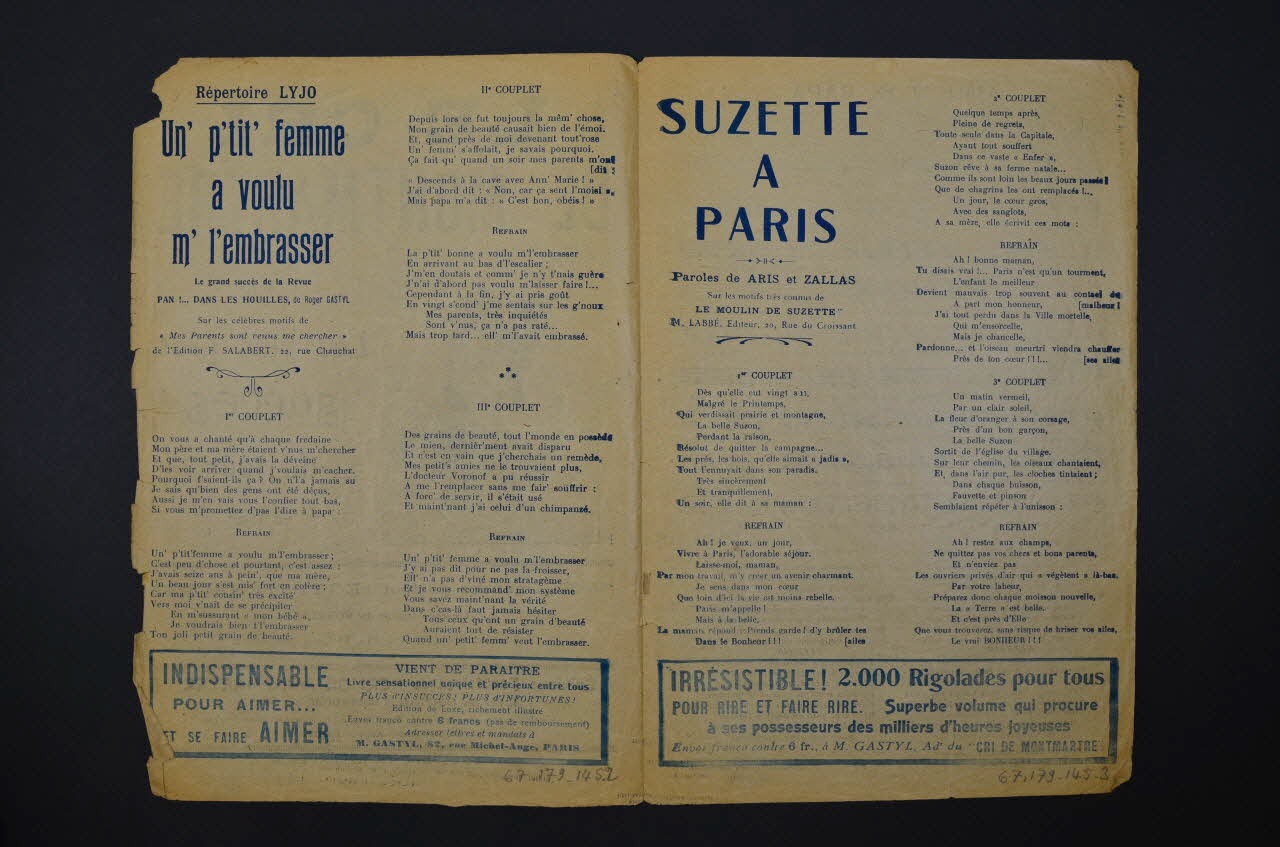 chanson, petit format, partition de musique, Suzette à Paris, Le cri de Montmartre, Aime ton papa, Un' p'tit' femme a voulu m' l'embrasser