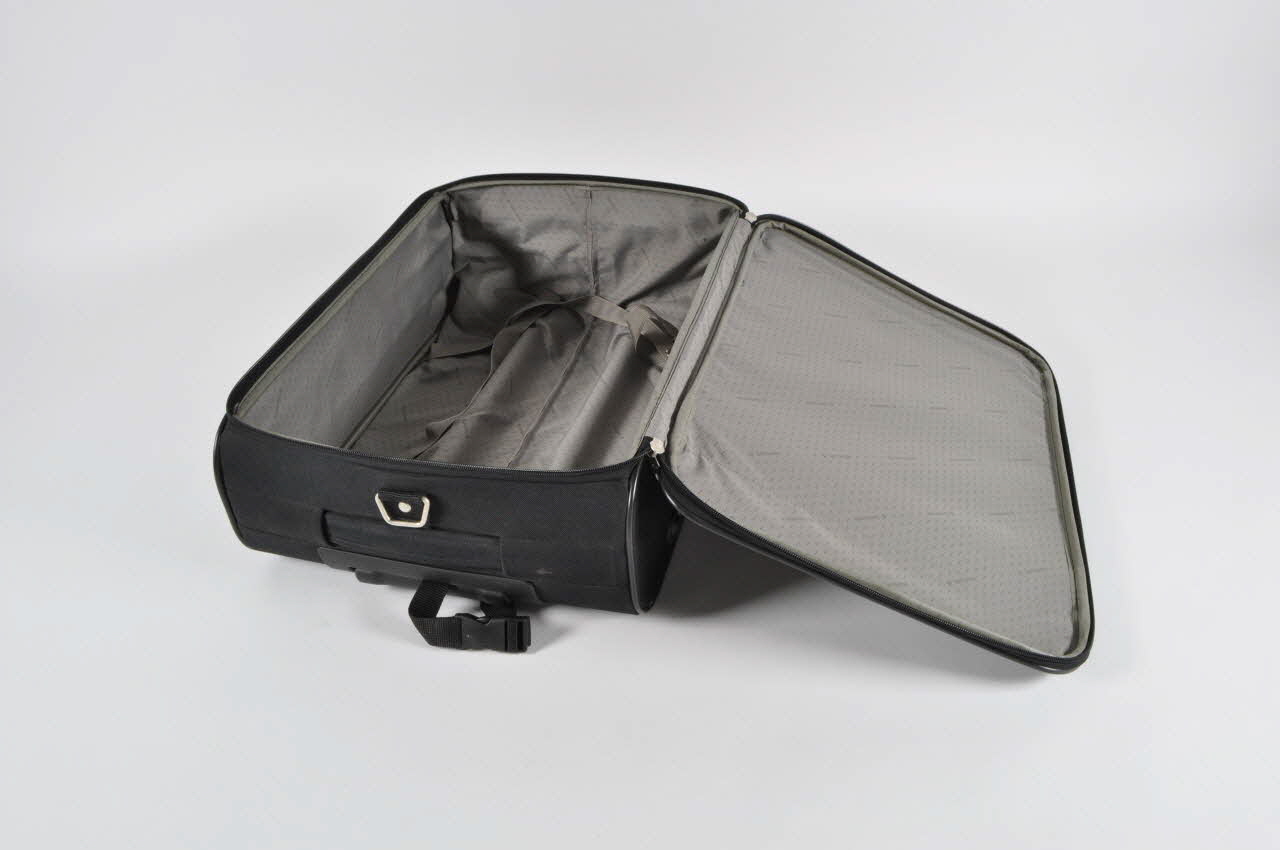 Crochet de fixation métalique près des poignées supérieures. Le logo Samsonite est présent sur la poche supérieure. Intérieur doublé en tissu gris Samsonite. Une fermeture éclair dans la doublure révèle le fond de la valise. La valise est équipée de 4 attaches intérieures en tissu gris et à boucles métalliques.Matériaux et techniques