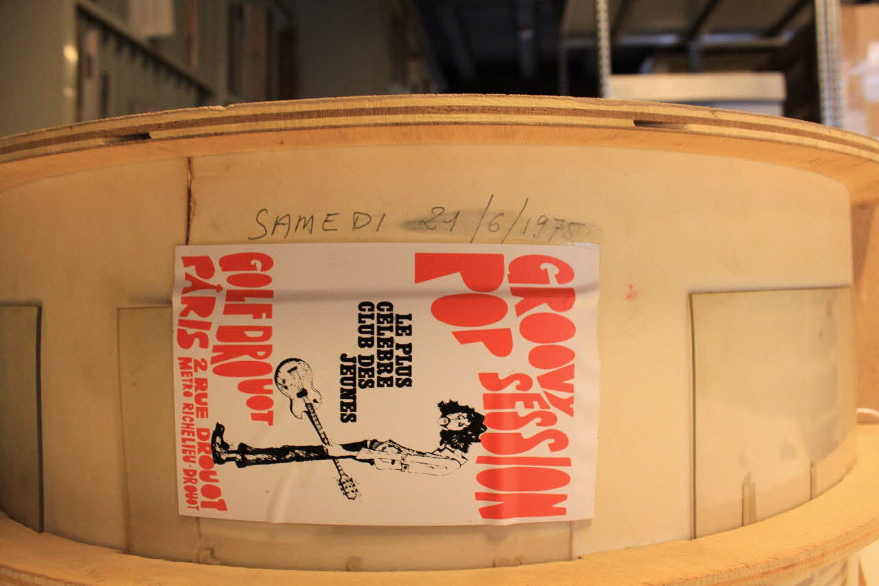 Lieu : Paris, Ile-de-France, FranceA la fin des années 1950, les jeunesses des sociétés européennes et méditerranéennes découvrent le rock'n'roll, le blues, le rythm'n'blues, le twist qui sont des musiques de populations noires et blanches américaines. Le phénomène social des groupes de rock et de la guitare électrique commence une longue histoire qui va transformer les musiques populaires de tous ces pays. Les années 60 sont les temps pionniers de cette histoire, les musiciens et les publics cherchent des lieux pour célébrer leu passion. Le Golf-Drouot en plein centre de Paris sera le plus mythique car très lié au début de la vie de rocker de Johnny Hallyday et de tant d'autres. Le couple Colette et Henri Leproux va transofmer un Golf-miniature couvert en premier "tremplin du rock" en France. La petite scène de ce club de jeunes va voir défiler tous les courants musicaux du rock et des milliers de musiciens amateurs et professionnels de tous les milieux sociaux. Des pionniers du rock au Maroc vont s'y installer dans les années 60 tels Vigon et Les Variations. Cette maquette représentant la scène du Tremplin en 1962 a été réalisée par Long-Chris qui avait créé les décors de cette scène. On y trouve des éléments essentiels des cultures de musiques amplifiées : le groupe de rock avec guitare, petits amplis, micro et batterie; le juke-box et les disques vivyl 45 tours; le personnage de Chouchou symbole de l'émission et du journal "Salut les Copains". Cette maquette permet de comprendre toute l'importance de la présence du corps dans ces musiques, du rock'n'roll au pogo du hard-rock et du punk-rock. Les musiques amplifiées se sont transmises aux jeunesses d'aujourd'hui et les pionniers continuent de les pratiquer, mais les petites scènes de proximité en ville manquent cruellement de nos jours. (Cf catalogue Trésors du quotidien)