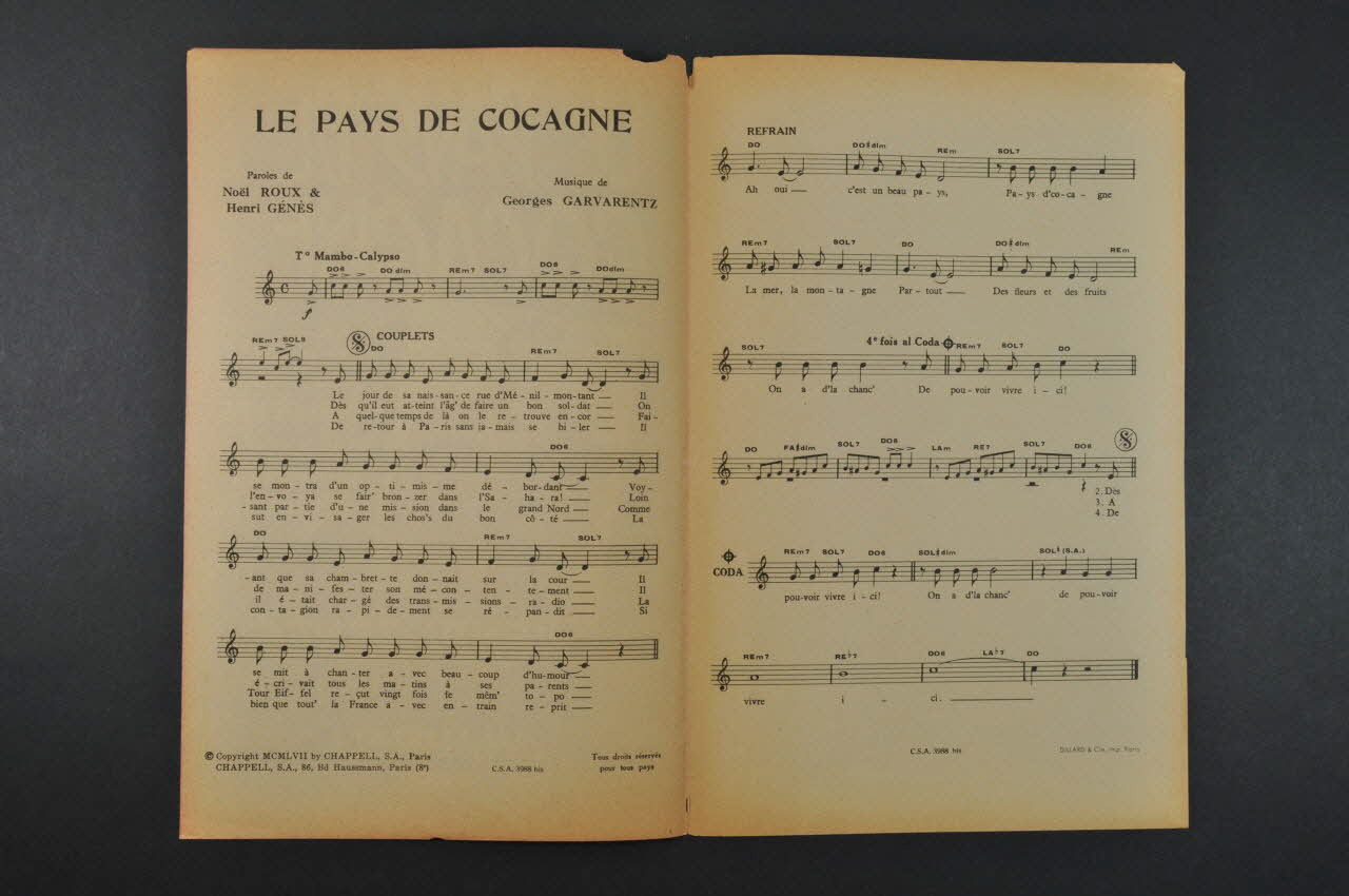 partition de musique, chanson, petit format, Le pays de Cocagne