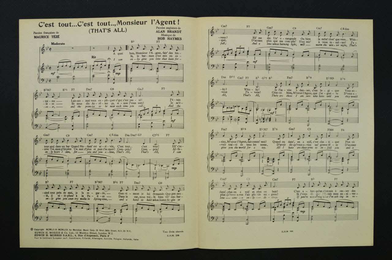 chanson, petit format, partition de musique, C'est tout...C'est tout... Monsieur l'Agent !