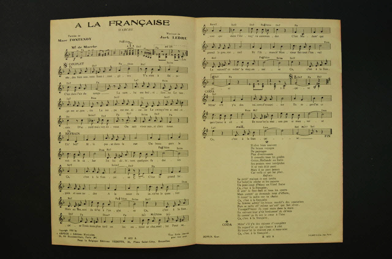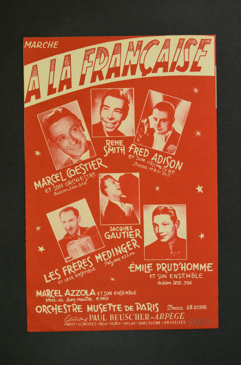 Sur la couverture, les portraits photographiques de Rogers, Lily Mayol, Maurice Chevalier, Jacques Mareuil et Lucien Jeunesse avec motifs d'étoiles. Les inscriptions renseignent le titre de la chanson, le nom des auteurs, des artistes et de l'éditeur.