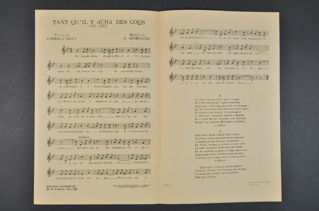 partition de musique, chanson, petit format, Tant qu'il y aura des coqs