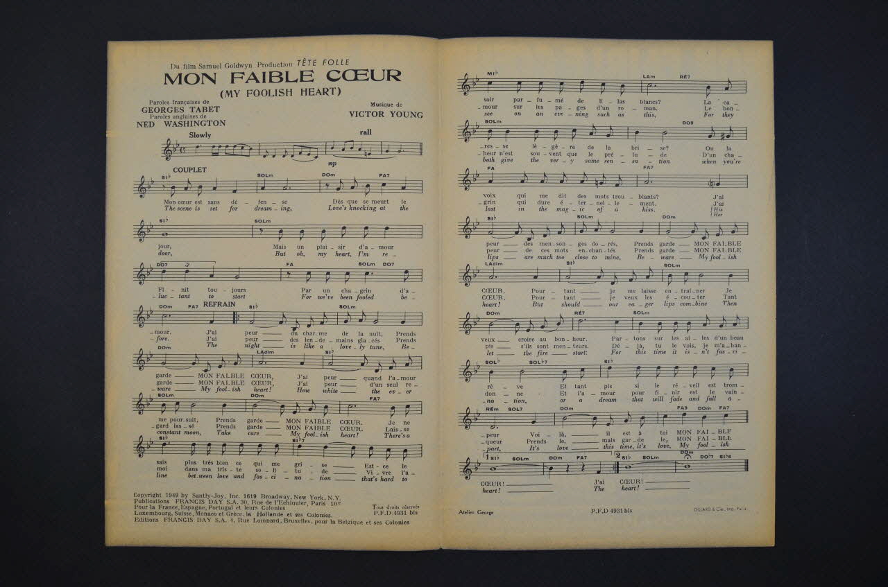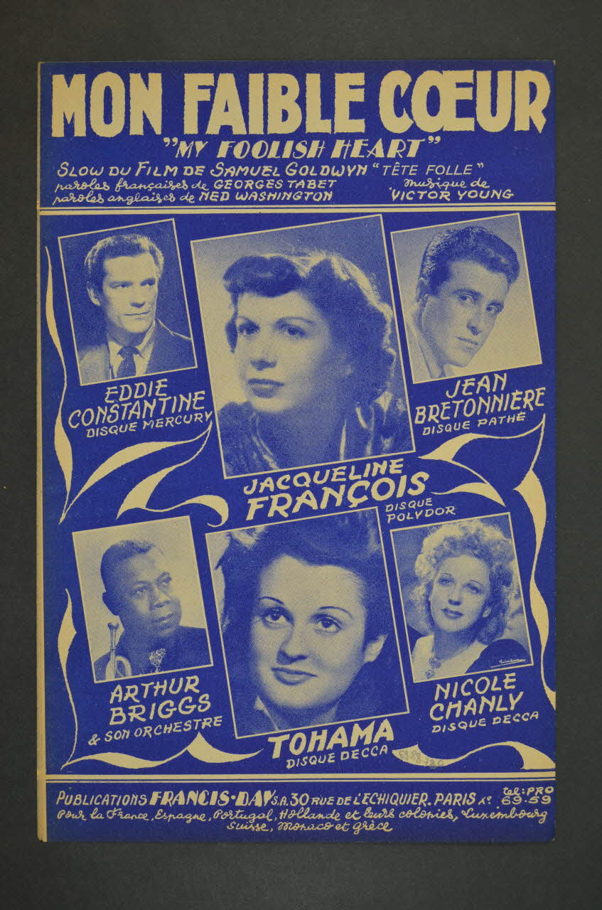 Des inscriptions renseignent le titre, les auteurs, les exécutants et l'éditeur. A l'intérieur, partition et paroles de la chanson. Au dos, les photographies d'autres interprètes.Matériaux et techniques