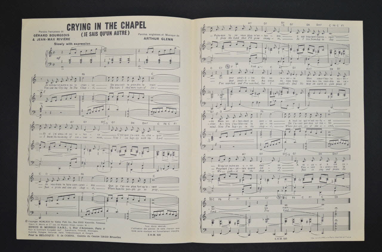 partition de musique, chanson, petit format, Je sais qu'un autre (Crying in the Chapel)