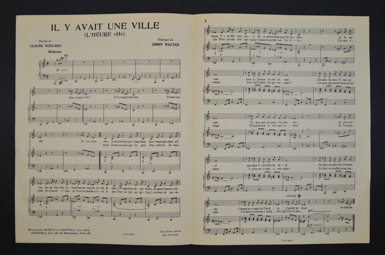 chanson, partition de musique, petit format, Il y avait une ville