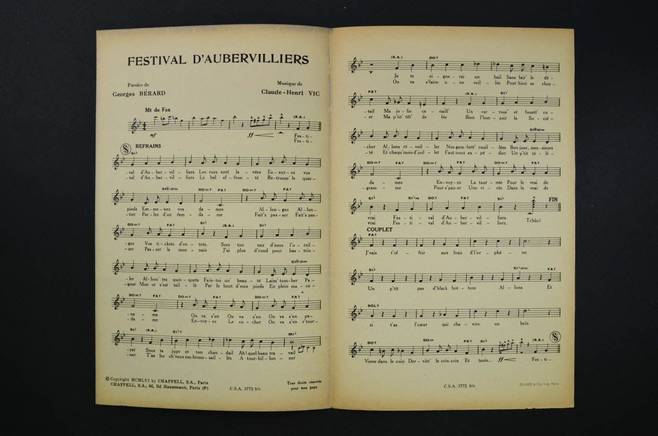 partition de musique, chanson, Festival d'Aubervilliers