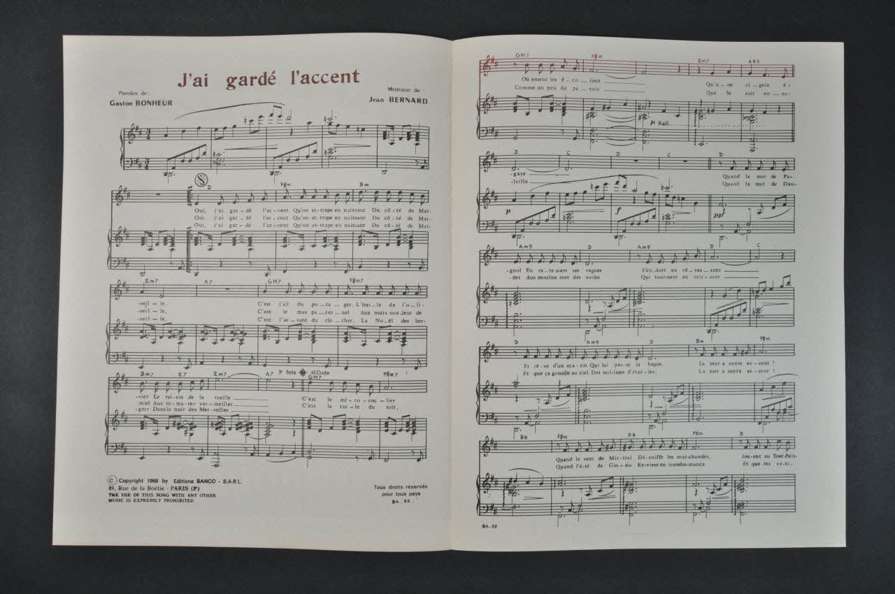 chanson, partition de musique, petit format, J'ai gardé l'accent