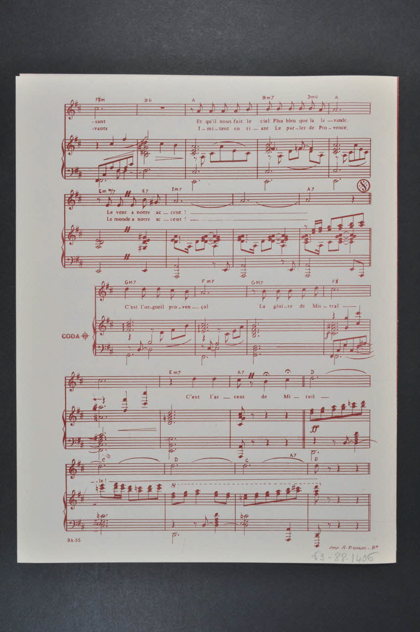 Des inscriptions renseignent le titre, les auteurs, les exécutants et l'éditeur. A l'intérieur et au dos, partition et paroles de la chanson.Matériaux et techniques