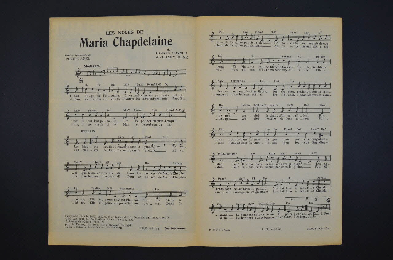 chanson, partition de musique, petit format, Maria Chapdelaine