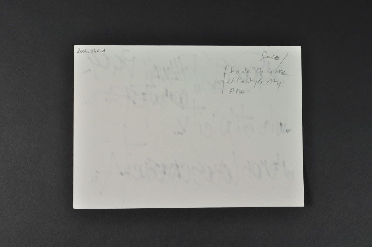 "HAWAÏ 2004 // COMPUTERS // wild stile city // MENOS LOBOS CAPEPIUCITA" (Au feutre noir.), sur une face"Paco // Hawaï Computer // wiedstyle city // AAA" (Au crayon à papier.), dosMatériaux et techniques